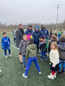 Pendant que les joueurs s’amusaient sur le terrain synthétique, jeux de bâtons, de ballons et petits matchs, les parents se tenaient bien au chaud au club house, profitant des crêpes, boissons et friandises diverses.