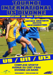 Comme tous les ans, lors du WE de l’Ascension, l’US Divonne organise son tournoi international U9 – U11 et U13. Cette année nous aurons la plaisir d’accueillir les équipes de Cessy-gex, ESCO, ASSGFC, Prevessin, Sauverny, FS Gessien, Rixhem, Valserine, Cluses-Scionzier, CS Italien, FC Donzelle, Foot Région Morges, La Semine, St-Pierre… Spectacle assuré, d’autant plus que le soleil sera visiblement au rendez-vous. Nous vous attendons nombreux au complexe sportif de Divonne-les-Bains. Restauration sur place bien entendu.